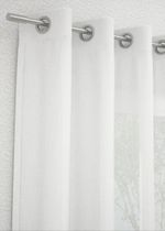 Das Gewebe dieses unifarbenen Dekostoffes lässt eine leinenartige Struktur erkennen und bringt dadurch auf subtile Weise eine schöne Natürlichkeit in den Raum. Der Meterwarestoff mit eingearbeitetem Bleiband kann für Raffrollos, Gardinenschals und Tischdecken gleichermaßen als Basis dienen. Bei einer Fensterdeko fällt durch den transparenten Stoff das Licht nur leicht abgemildert hindurch, die Atmosphäre bleibt hell, offen und freundlich. Dadurch, dass der Dekostoff in Meterware unifarben ist, lässt sich ein Accessoire aus diesem Stoff abwechslungsreich kombinieren.