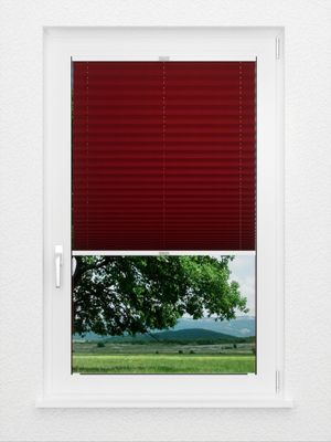 Dieses Verdunklungsplissee besteht aus mehreren Lagen, inklusive einer weiß beschichteten Rückseite und einer isolierenden Aluminiumschicht in der Mitte. Diese bewirken, dass der Plisseestoff verdunkeln, gleichzeitig einen super Wärmeschutz bieten kann, wovon vor allem Zimmer unterm Dach profitieren. Dies setzt allerdings voraus, dass die Plisseeanlage komplett geschlossen ist. Da der Wärmeaustausch am Fenster sommers wie winters geringer ausfällt, hat dies einen Energiespareffekt zur Folge. Die Kosten für die Kühlung der Räume im Sommer können mit diesem Plissee am Fenster genauso gesenkt werden wie die Heizkosten im Winter. Je nach Lichteinfall wirkt der unifarbene Plisseestoff leicht glänzend und seidig. Verdunklungsplissees bieten gleichzeitig exzellenten Sichtschutz, zieren daher in erster Linie die Fenster von Schlaf- und Kinderzimmern. Das glutvolle Rubinrot lässt eine intensive Wärme in den Raum kommen, mit dem roten Plissee wird das Fenster sofort zum Hingucker. Helle Beige- und Vanilletöne können das einnehmende Rot besänftigen und gleichzeitig in seinem Ausdruck bestärken. Tiefe Brauntöne, Rotviolett und Taupe sorgen zusammen mit hellen Graunuancen für eine moderne Gemütlichkeit.