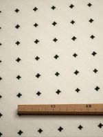 Dieses Modell ist ein stilvoller Hingucker. Der beigefarbene Untergrund ist über und über mit kleinen schwarzen Kreuzen übersät, was dem Design eine fast sternenförmige Optik verleiht. Gesäumte Seiten und ein gesäumter Abschluss geben dem Ganzen einen ansprechenden Rahmen. Sie bekommen einen Dekostoff, der aber nicht nur ansprechend aussieht, sondern darüber hinaus mit Flexibilität und universelle Einsetzbarkeit zu überzeugen weiß. Ganz gleich, welche kreative Idee Sie damit verwirklichen wollen. Die Lichtdurchlässigkeit des ansonsten blickdichten Baumwollgewebes unterstützt Sie dabei. Es erzeugt überall eine wohlige und gemütliche Wärme. Die Deko wirkt unaufdringlich und lässt sich problemlos mit anderen Naturfarben kombinieren. Dadurch harmoniert der pflegefreundliche Stoff mit fast jedem Raumkonzept. Zum schonenden Reinigen bei 30°C können Sie getrost die Waschmaschine benutzen.