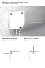 Das Kassettenrollo bietet verlässliche Funktion und gradlinige Erscheinung. Der verdunkelnde Stoff wird durch das Verstauen innerhalb der Kassette stilvoll ergänzt. Dafür stehen verschiedene Ausgangsmaße als Varianten bereit. Sollte das genau passende Maß für Ihr Fenster nicht passen, lässt sich mit etwas handwerklichem Geschick die Breite des Rollos mit einer Metallsäge und einer guten Stoffschere genau anpassen. Da die Länge ohnehin variabel ist, erhält man mit diesem Rollo am Ende eine beinahe maßgefertigte Lösung am Fenster. Der Stoff wird über die rechtsseitig angebrachte Kette stufenlos bedient. Für Kindersicherheit nach DIN EN 13120 von Kindern sorgt ein transparenter Kettenhalter. Das mitgelieferte Zubehör ermöglicht die verschraubte Montage an Decke oder Wand. Zum Kassettenrollo können noch diverse Zubehörteile ergänzend bestellt werden: Sie haben die Option, das Kassettenrollo mit einer Pendelsicherung zum Kleben oder Klemmen auszustatten. Bei optimaler Verdunkelung empfehlen wir die extra bestellbaren Seitenblenden. Alle separat bestellbaren Zubehörteile sind nicht im eigentlichen Lieferumfang des Rollos enthalten.