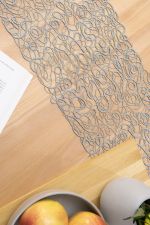 Ein Fadengewirr aus unterschiedlich dicken Fäden lässt ein dynamisches, lebendiges Design entstehen. Die durchsichtige unifarbene Tischdeko von Plauener Spitze® können Sie als Tischdecke, Tischläufer und kleines Deckchen bei uns im Shop bestellen. Die Windungen, Schlaufen und Schlingen, die in dem Gewirr erkennbar sind, wirken unregelmäßig, die Linien wie von Hand gezogen. Besonders effektvoll erweist sich diese Art von Tischdeko auf einer glatten, cleanen Oberfläche oder in Kombination mit unifarbener Tischwäsche.