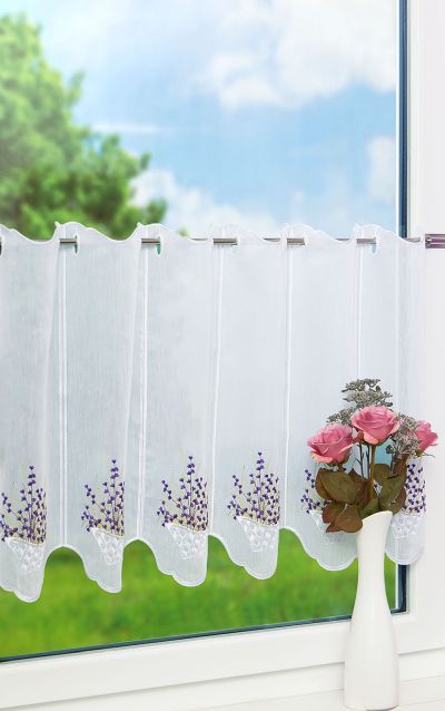 Scheibengardine Plauener Spitze® - Frühlingsblumen #1W in Lila 1528